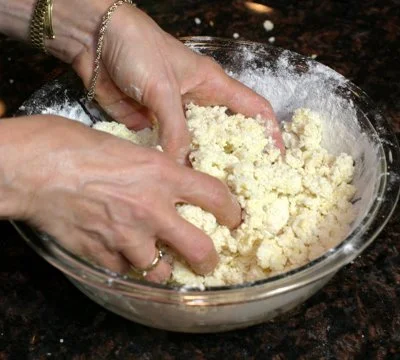 It's gotten cold outside and so it's time to make gnocchi. I hardly ever make this in the summer, but in the winter, this is such great comfort food. Gnocchi is a lot of fun to make - it's like playing with Playdough. I've included a video in this post to show you how easy they are to roll out and cut. You can make them when you don't have anything else around for dinner because the ingredients are all things you have on hand anyway - flour, potatoes and eggs. And now it takes me even less time to make them. Most cooks think you have to run the finished gnocchi over a fork or grater to get those ridges that will catch the sauce. That's how my mom and I used to make it. However, when I have gone to Italy and ordered gnocchi, it is very often made without those ridges. They are just nice fluffy little pillows. I know that Todd English makes them this way, also. And I have come to actually prefer the texture of the gnocchi without the ridges.