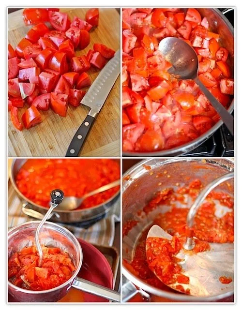 The process is simple and not at all difficult. It just takes a long time in the oven. You will need a food mill in order to strain out the seeds and skin of the tomatoes. You can use a sieve and a spoon, but a food mill will make the process so much faster because of the quantity of tomatoes you will be working with.