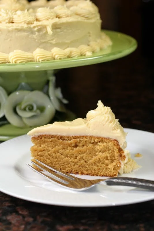 When I saw what this month's Daring Baker's Challenge was, I was excited because it was something sweet and the last couple have been savory. This cake comes from Shuna Fish Lydon, who is a professional pastry chef and writes the great food blog, Eggbeater. I started reading all the comments by people who have previously attempted this cake and had real problems with it. I was sure I would, too. But Shuna had lots of detailed notes posted about how to deal with some of the challenges of this cake and I followed them thoroughly and did not have any problem at all. The cake was moist and light and absolutely delicious. The caramel frosting is outstanding. So if you have the urge to make this cake, don't be afraid. It was pretty straightforward. It just takes a little time to make it properly.