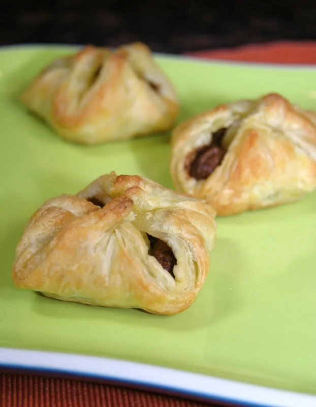 That's right, it's World Nutella Day. This indulgent day was created by Sara Rosso, an American blogger living in Italy who writes Ms. Adventures in Italy and Michelle Fabio, another American blogger living in Italy who writes Bleeding Espresso. These two women adore Nutella and wanted to create a day when we all indulge! In the spirit of that day, I've made some Nutella Purses which contain banana - one of the two great combinations in all of food history - banana and Nutella. These are so easy to make and only take a few minutes. You can certainly add some nuts to this if you like, which I would have done (walnuts, specifically) but I am the only soul in my household that likes nuts. If you've never bought Nutella before, you can find it next to the peanut butter in almost any grocery store. It's a staple in Europe, even at breakfast. Please visit The World Nutella Day site on February 9th to see the complete 2009 roundup of Nutella recipes from all around the world.