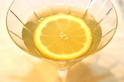 Limoncello cocktails. Simply a shot of limoncello, topped off with champagne (actually, we used an Italian Prosecco) and a slice of lemon. No ice, because you keep the limoncello in the freezer and ice would only dilute the drink.